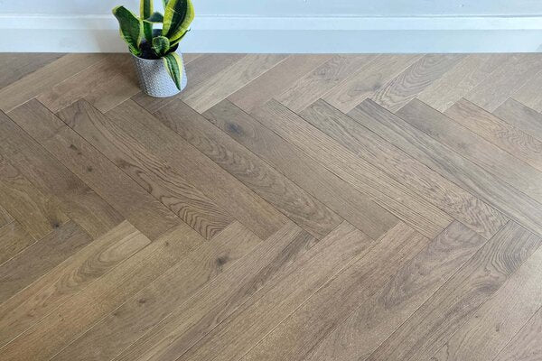 Fumé Fransk Eik Fiskebensparkett med klikksystem