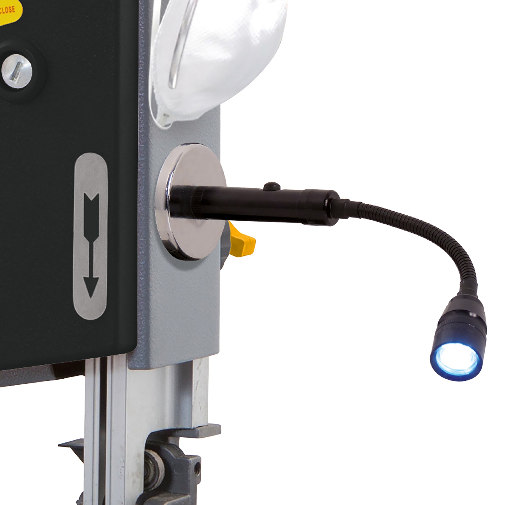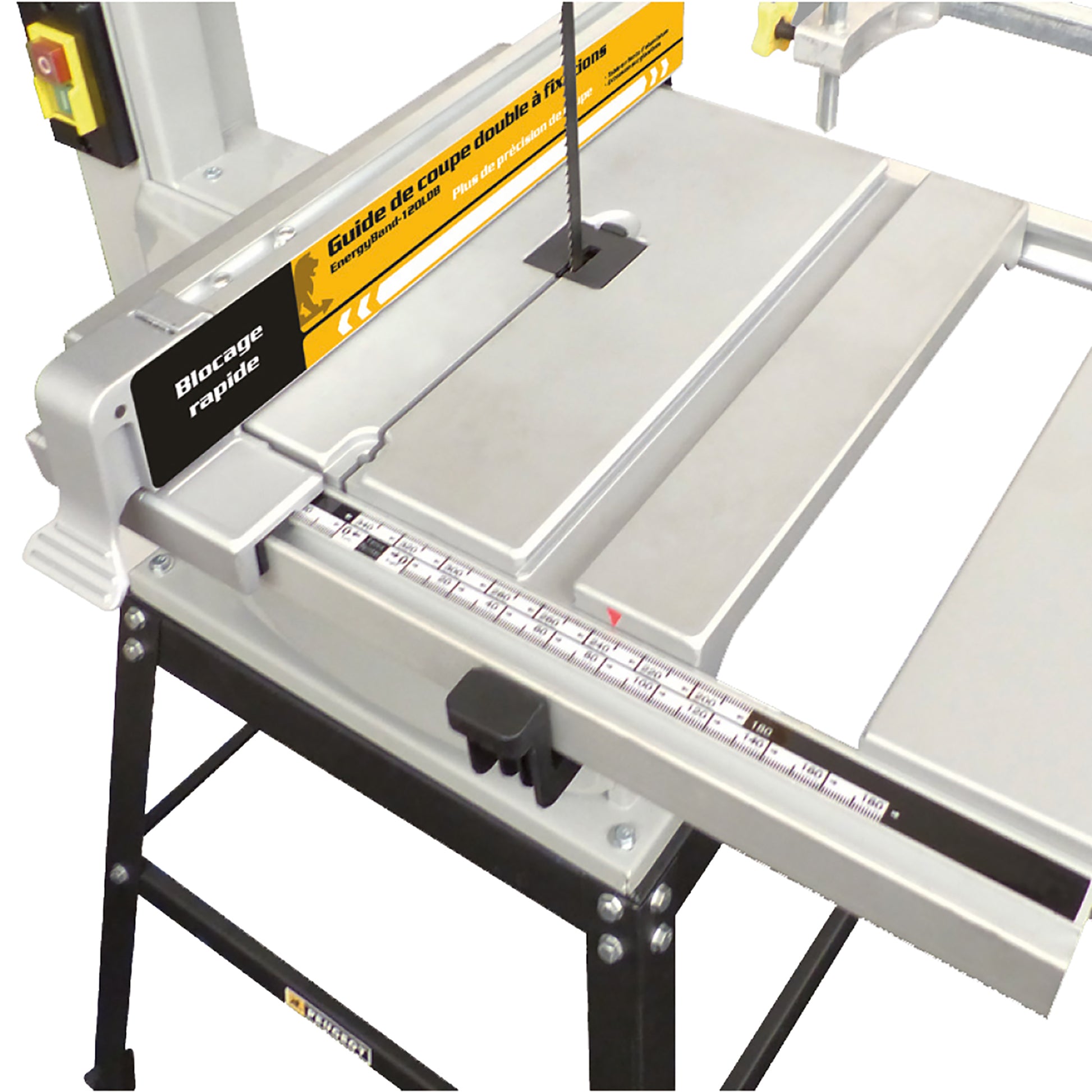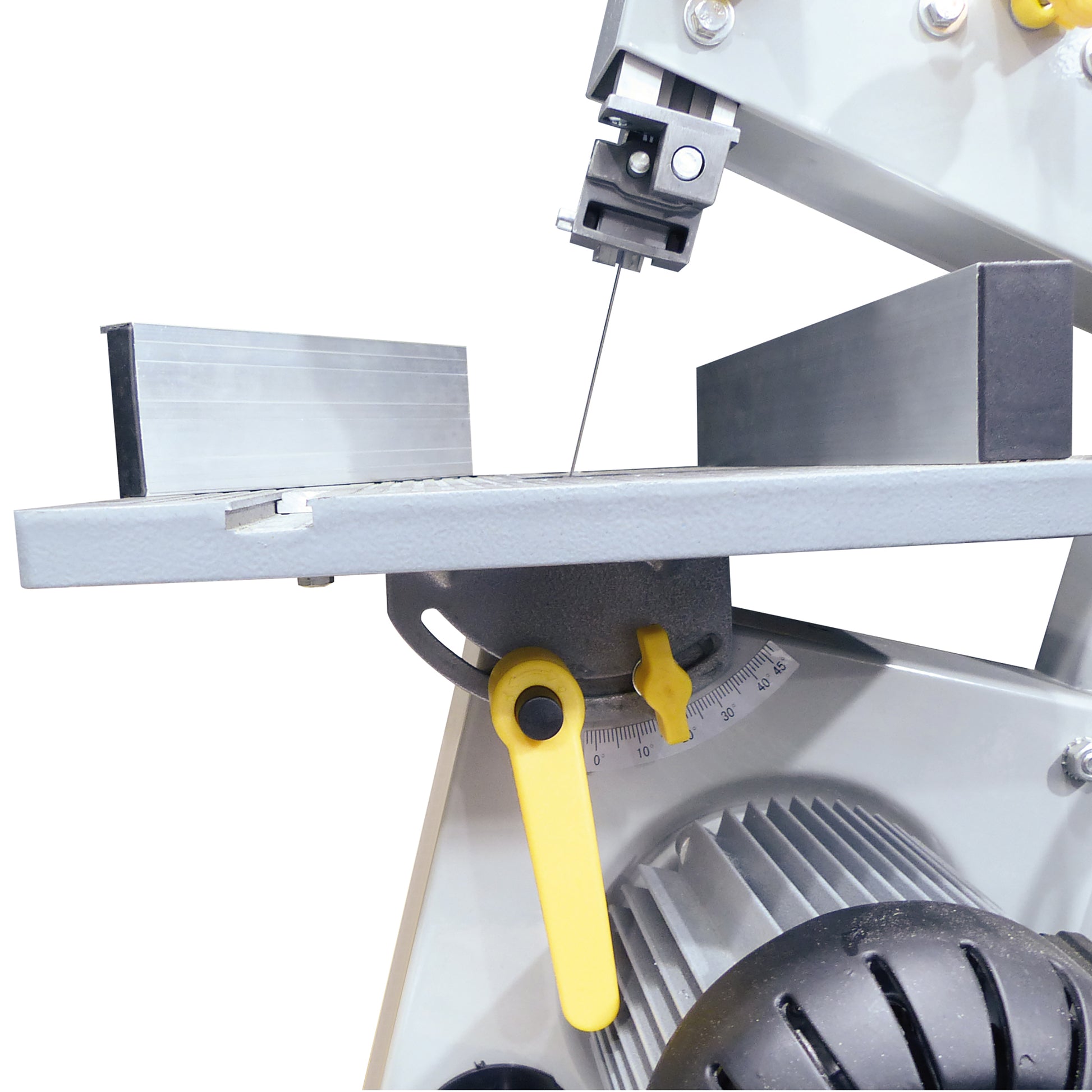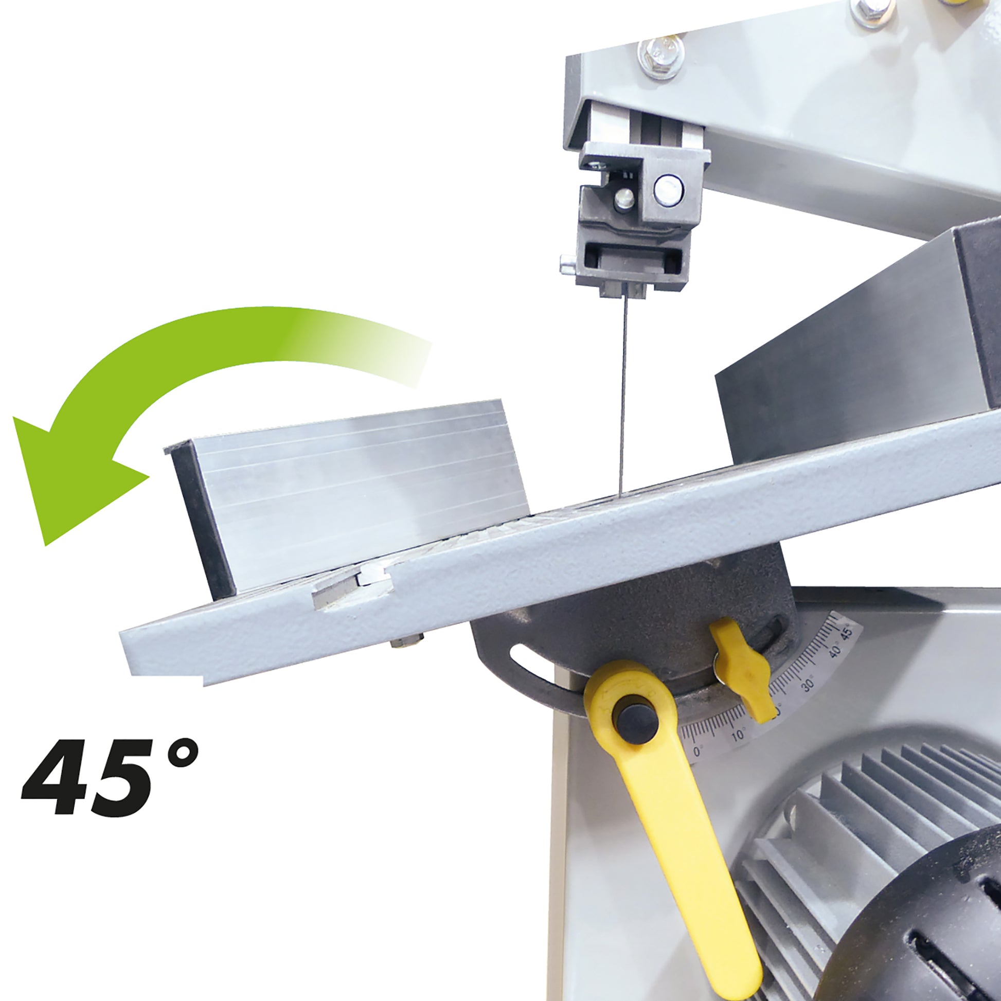 250 W benkbåndsag - Skjærekapasitet opptil 80 mm med et 1400 mm blad. - En 200 mm svanehals. - Mekanisk sveiset metallramme for optimal stabilitet. - XXL støpt aluminiumsbord som kan vippes 45° for skråkutt. - Hurtigutløserforlengelse for en utvidet arbeidsflate (530 x 300 mm). - Stille asynkronmotor for komfortabelt arbeid. - Leveres med gjæringsføring og skyvepinne. - Øvre og nedre bladføring for presise kutt. - Integrert støvavsugsdyse for et renere arbeidsmiljø. - Bladstrammingssystem med riflet håndhjul. - Leveres med justerbar magnetisk LED-belysning og magnetisk støvmaskeholder. - Dobbeltmontert parallell sagføring for større presisjon og sikkerhet. - 5 års garanti.