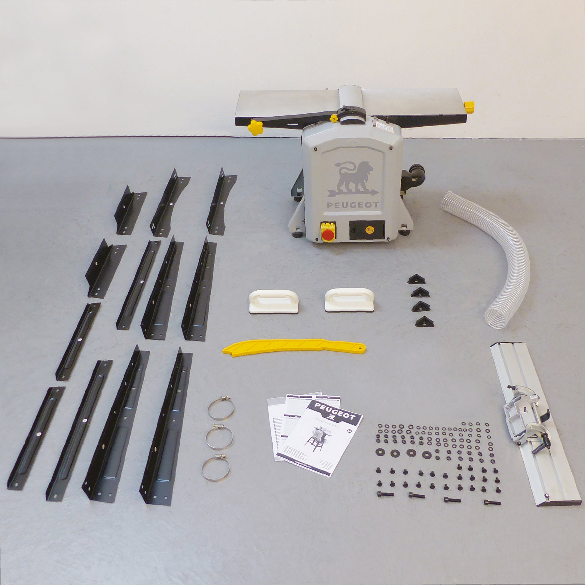 PEUGEOT Plan/Tykkelse Høvel med integrert støvsuger er utviklet for å levere resultater av høy kvalitet i trebearbeidingsprosjektene dine. Utstyrt med en kraftig 1500 W motor, sikrer denne maskinen jevn og pålitelig ytelse for skjøting og høvling av treverk. Remdriften bidrar til effektiv kraftoverføring, noe som sikrer et rent og presist kutt hver gang.